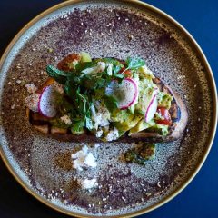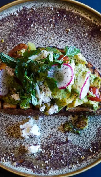 Smashed avo,Meredith goat cheese , crispy pumpkin seeds, poached egg on grilled sourdough